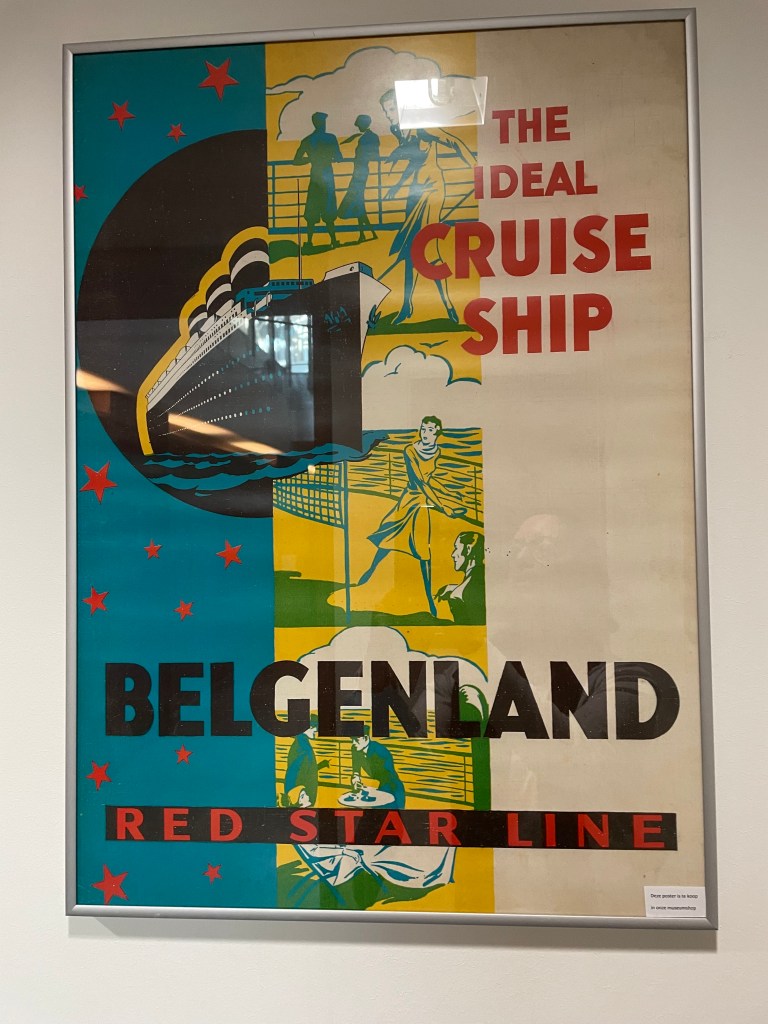 What we did find (we being daughter Gillian and I) was a fascinating museum with a focus on the Red Star Line’s and Antwerp’s role in moving millions of people who were emigrating from persecution, poverty, and war through Antwerp to the US. The starting point in the museum’s displays shows a timeline of human migration evidenced by archeological finds and recorded documents over the last several millennia.