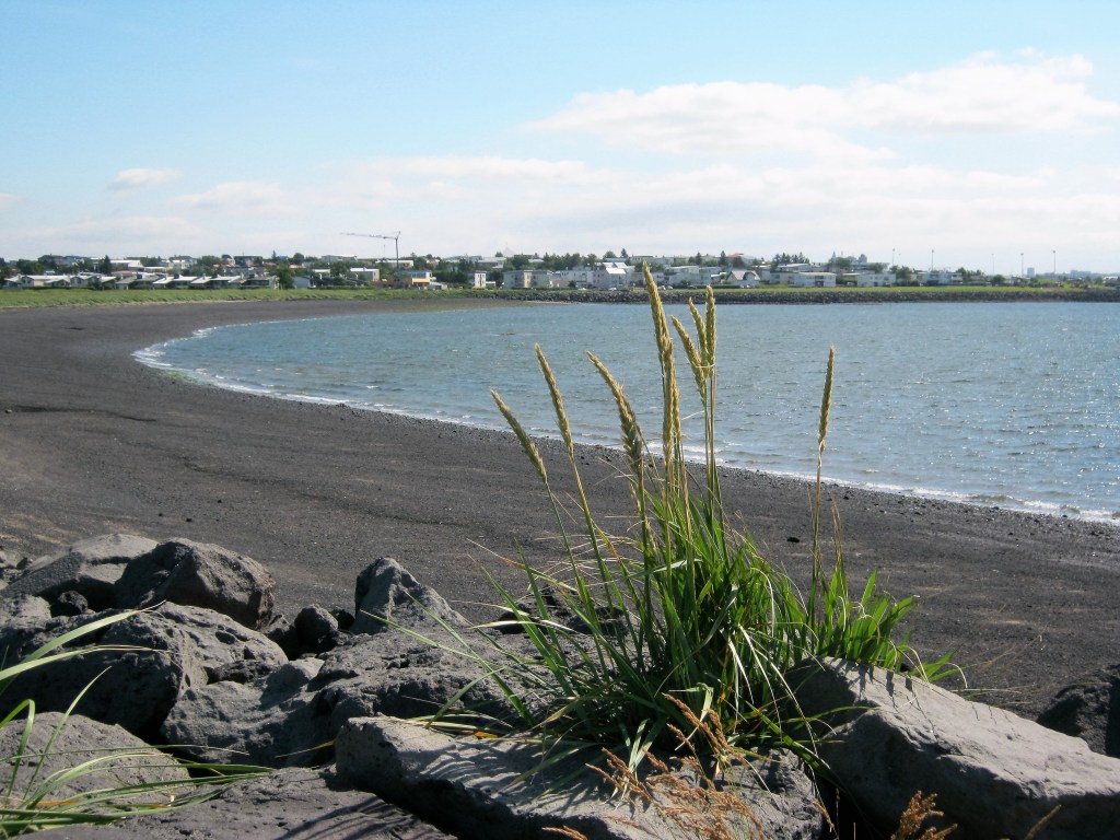 A shortcoming of the tourist maps is they show only the beginning of the Seltjarnarnes peninsula, a shortcoming that proved a challenge for us on a recent visit. We decided to forgo some of the usual tourist activities and followed the coast path west from the city out toward the lighthouse at Grotta Island, continue on the coastal path to Nautholsvik, completing the circuit back to the hotel. It was a stunningly beautiful day and an exhausting excursion. We had no idea when we set out that the trek would be about 16 km and over 3 hours in duration. Aside from George’s sunburn and my blown-out knee, it was a grand day out, followed by a well-earned nap.