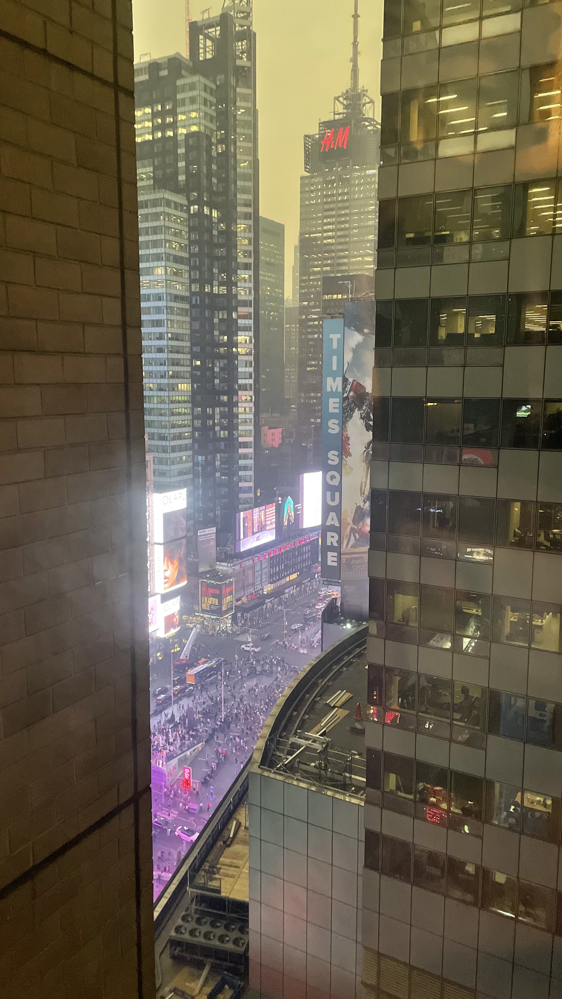 I was excited to see the scenery along the Hudson; unfortunately, we were traveling during the days when the smoke particulates from the forest fires in Canada were at their worst in the Northeast US. The view from the train windows was a monochromatic range of gray but for the large red dot in the sky that was the sun. Despite the blur caused by the smoke, we did manage to see several herons in the wetlands along the river. A pair took flight as the train passed.